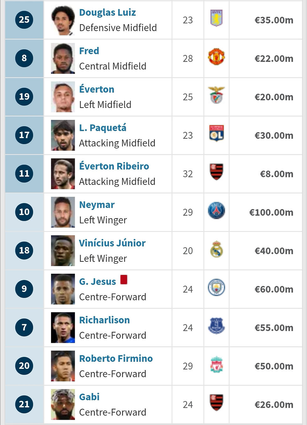 বর্তমান ব্রাজিলিয়ান স্কোয়াডঃ🇧🇷